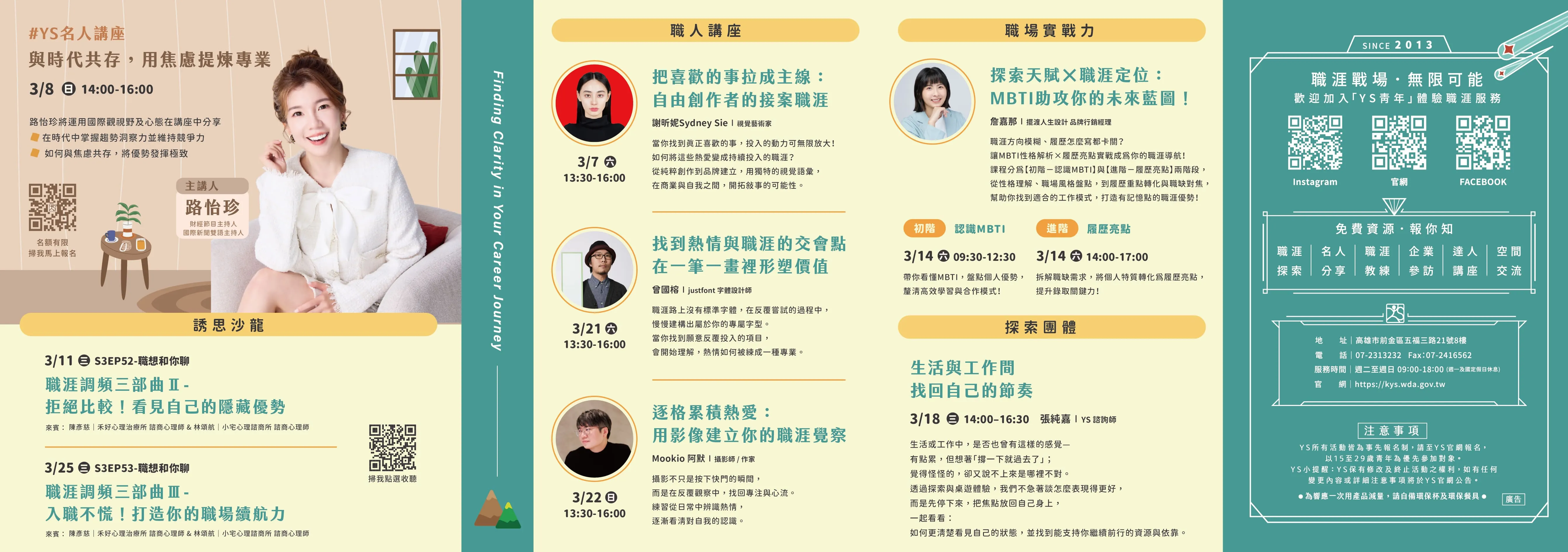 【轉知】勞動部YS青年職涯發展中心3月份活動訊息
