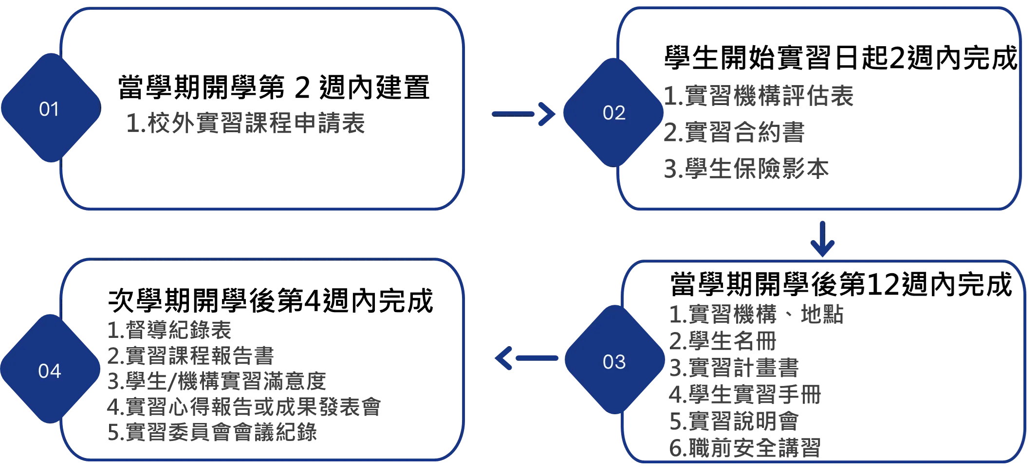 更詳細內容請參考教育部「大專校院推動學生校外實習課程作業參考手冊.pdf」